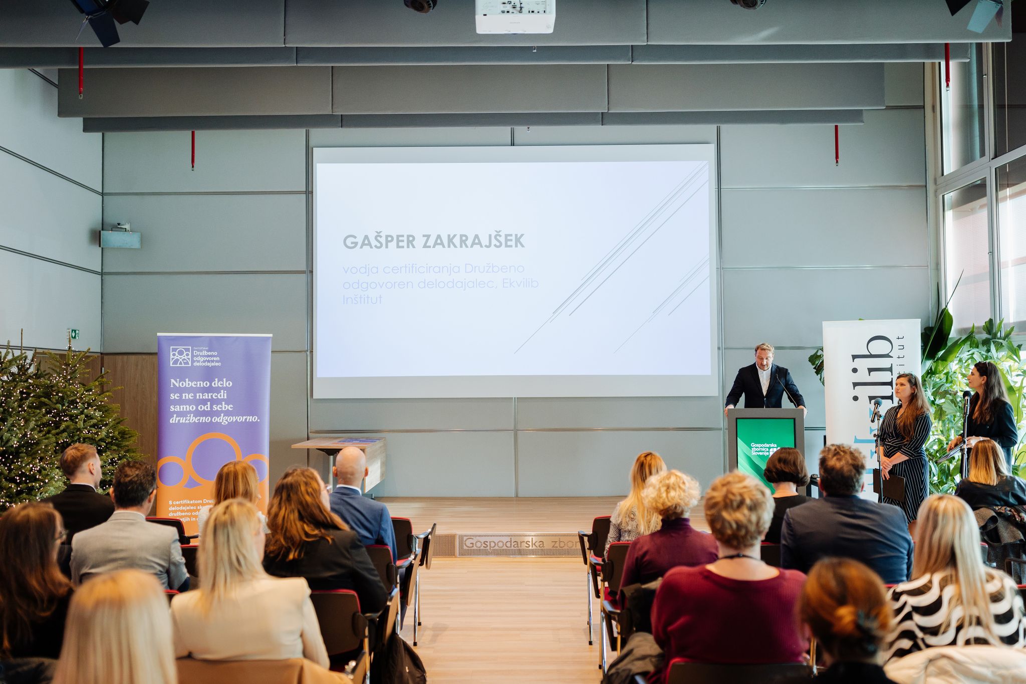 Ekvilib Inštitut v ponedeljek, 1.12.2025, na Gospodarski zbornici Slovenije na slavnostnem dogodku podelil certifikate Družbeno odgovoren delodajalec.